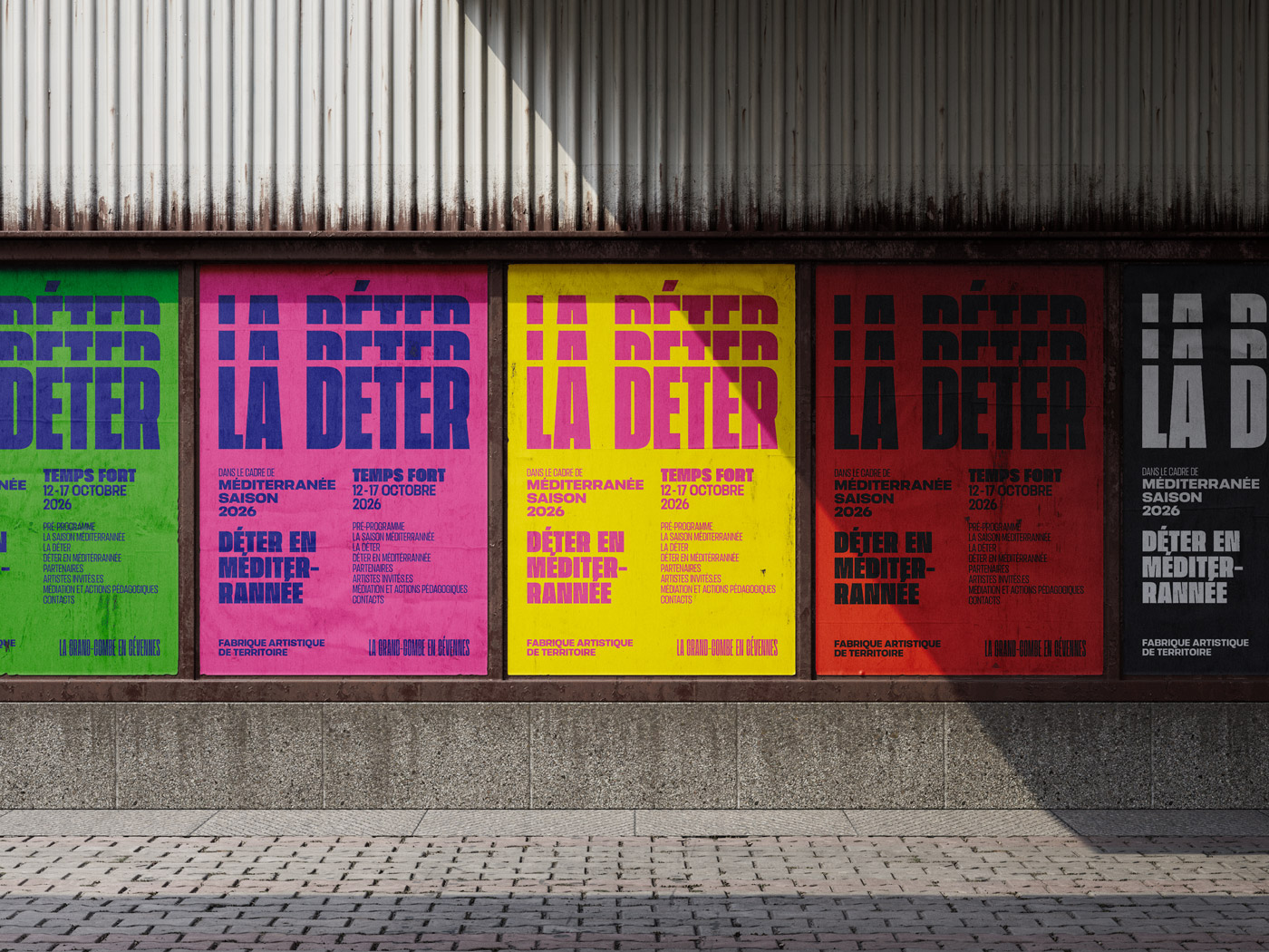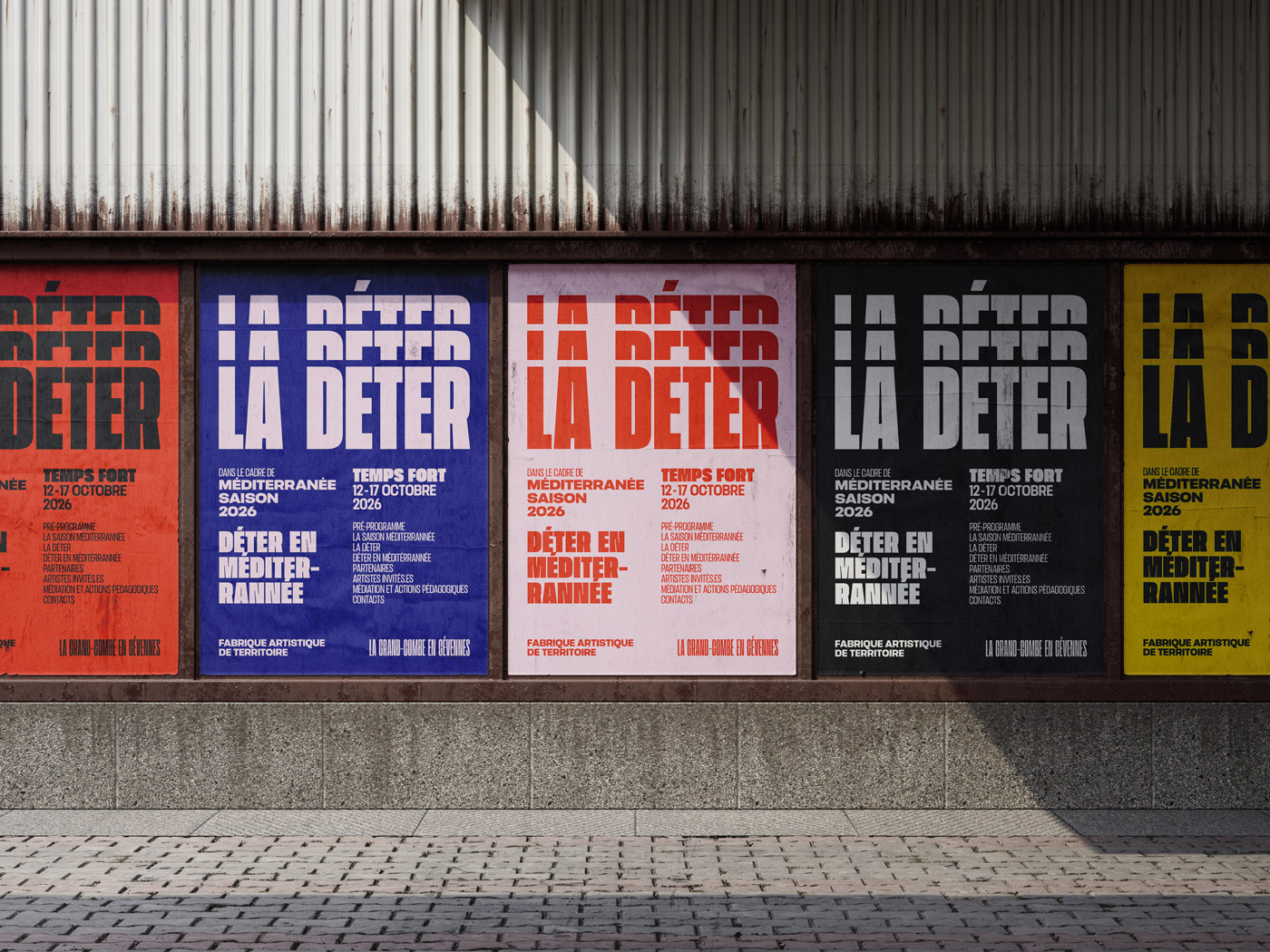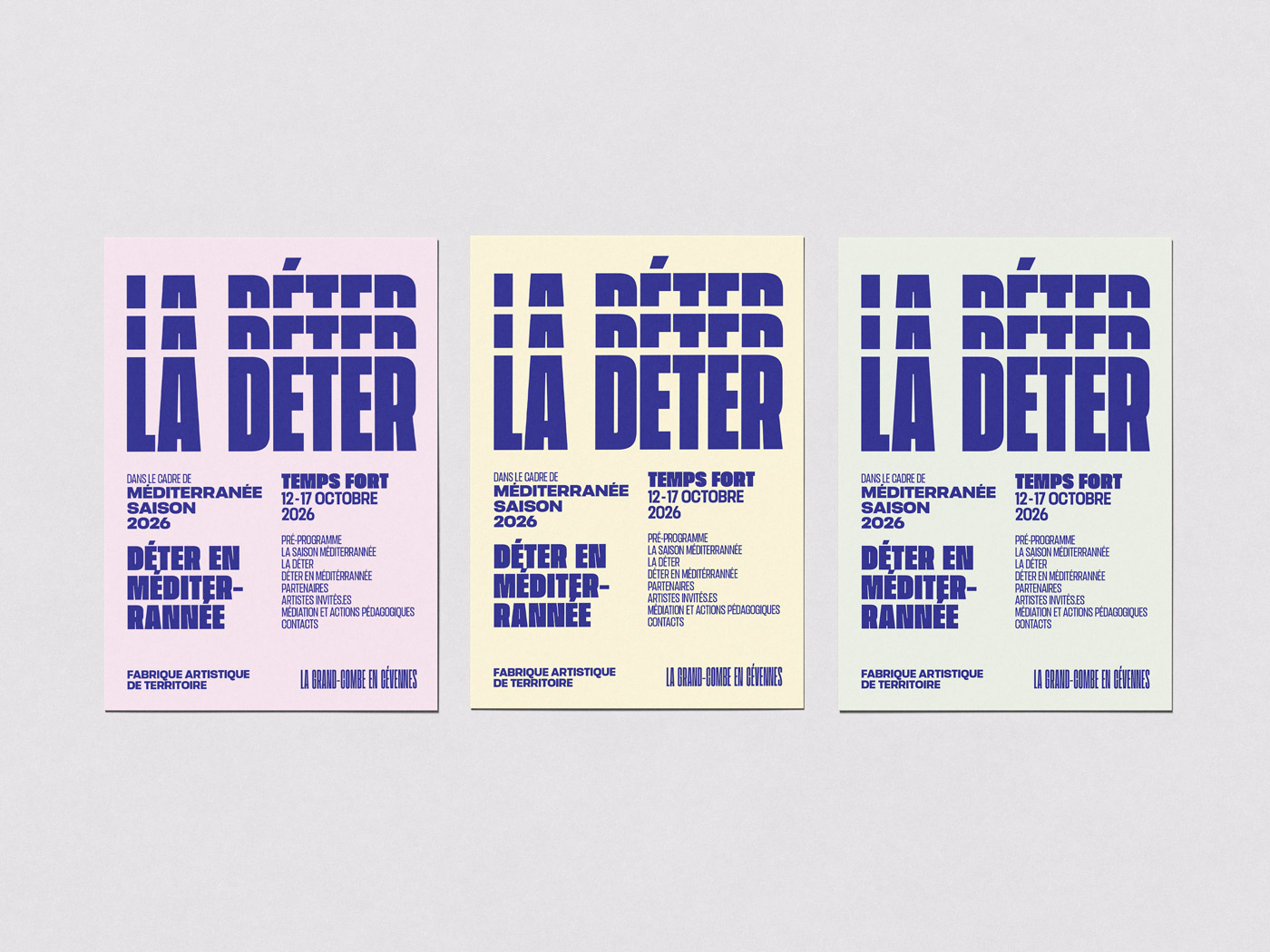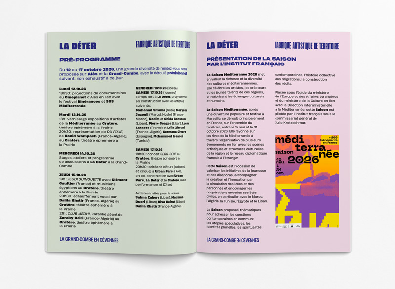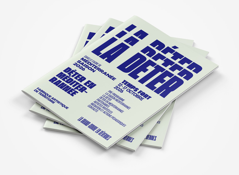 Dans le cadre du projet de coopération artistique Saison Méditerranée 2026 piloté par l'Institut Français, La Déter nous a sollicités pour la (re)création de l'identité graphique de ses supports éditoriaux.