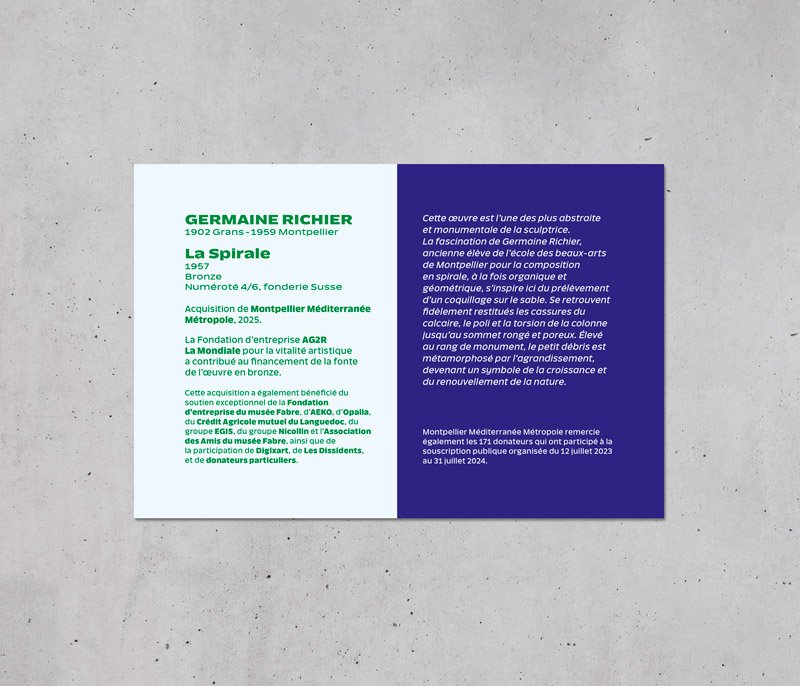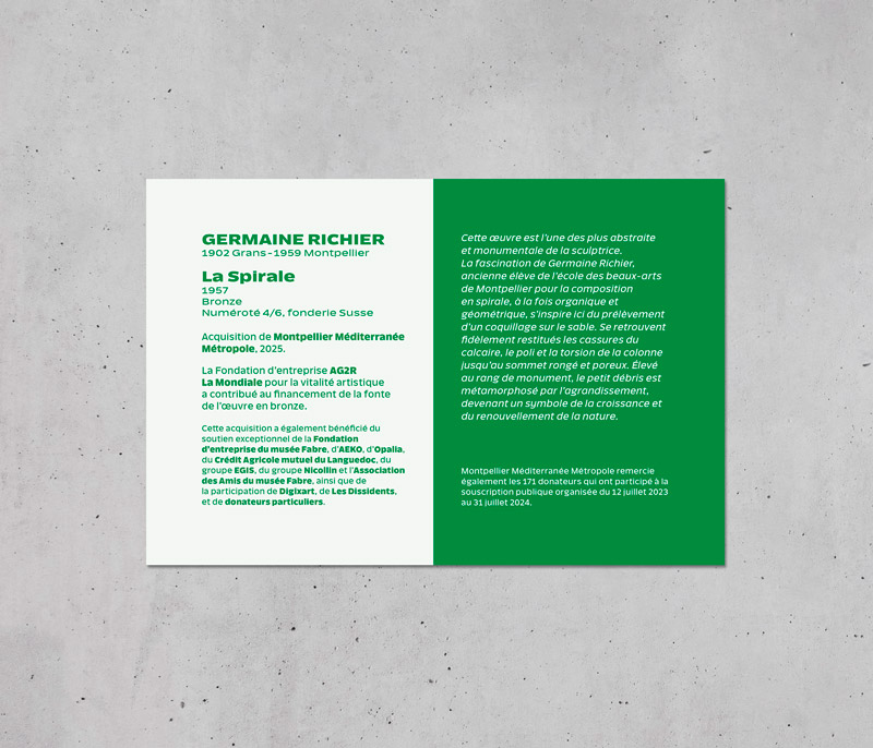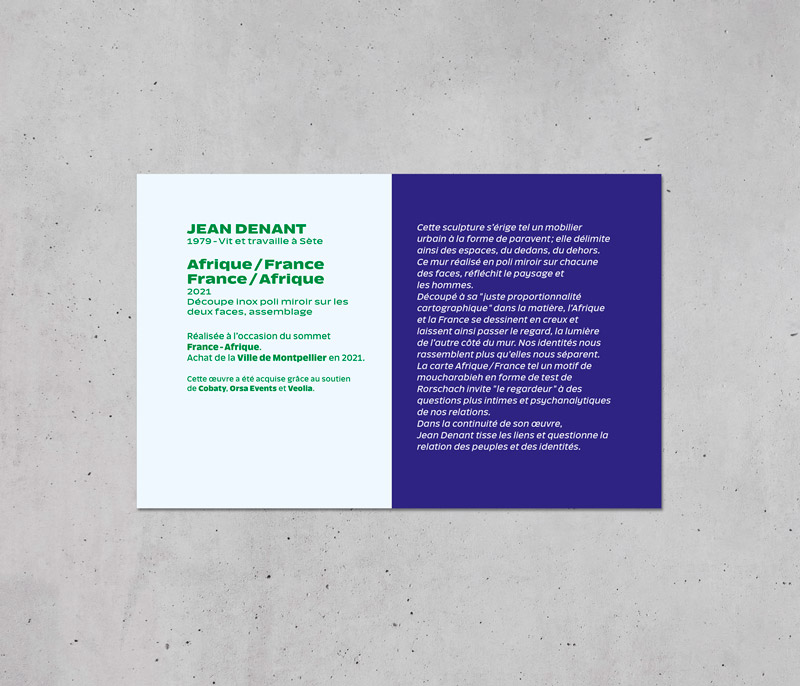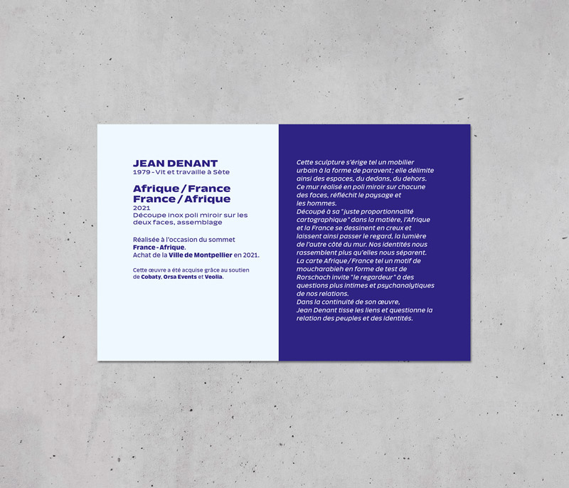 Le Pôle Culture et Patrimoine de Montpellier Méditerranée Métropole nous a sollicités pour créer l'identité graphique d'une série de cartels d'information d'oeuvre en espace public.