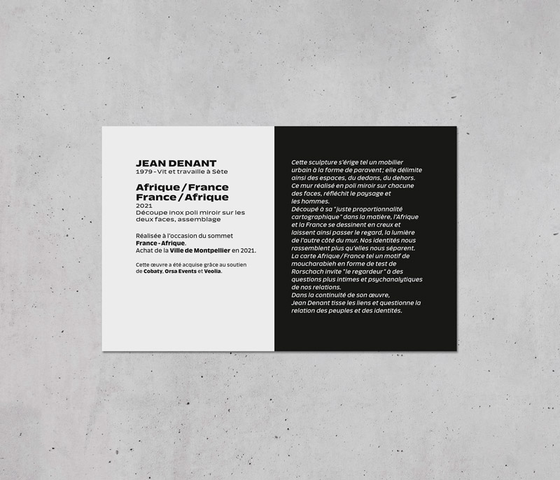 Le Pôle Culture et Patrimoine de Montpellier Méditerranée Métropole nous a sollicités pour créer l'identité graphique d'une série de cartels d'information d'oeuvre en espace public.